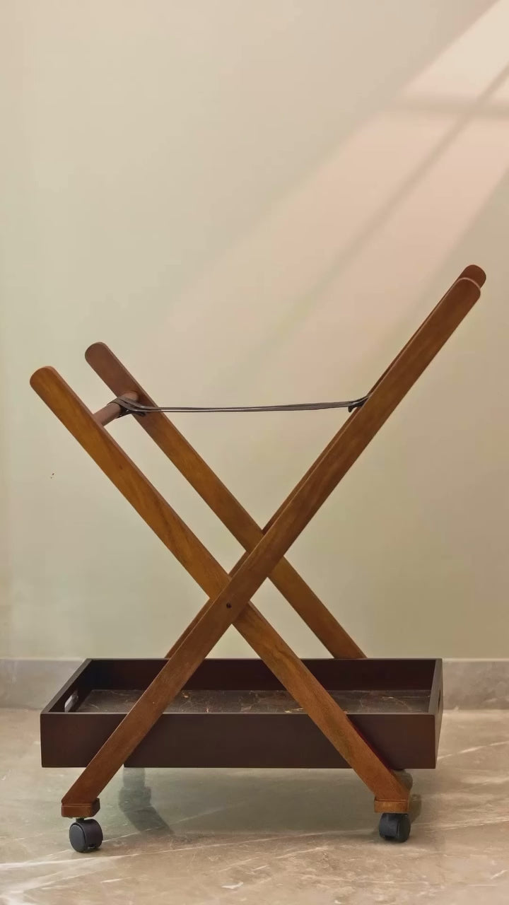 Designed with smooth-rolling wheels and foldable legs, this mobile serving trolley is as practical as it is polished. Use it to serve drinks, display glassware, or carry hors d’oeuvres during gatherings.Â
